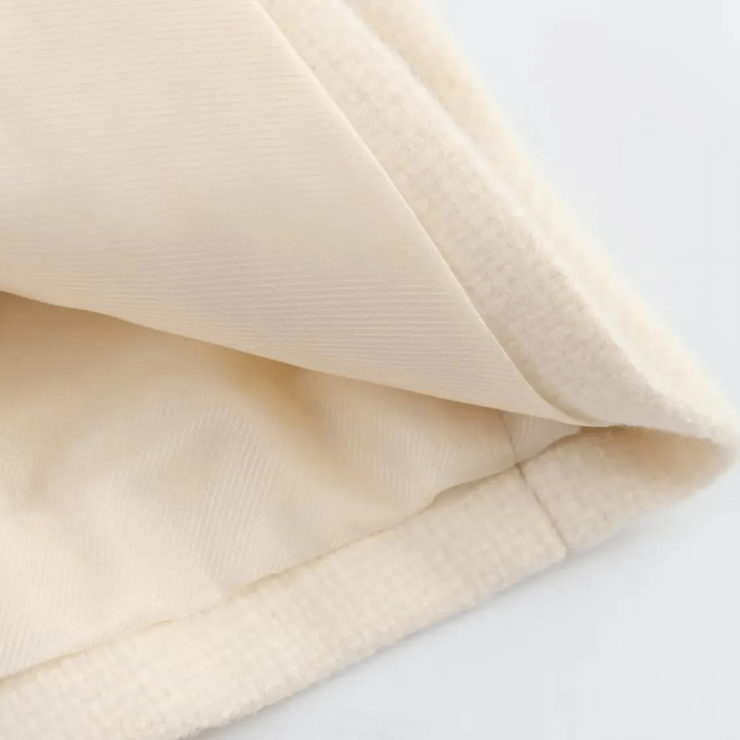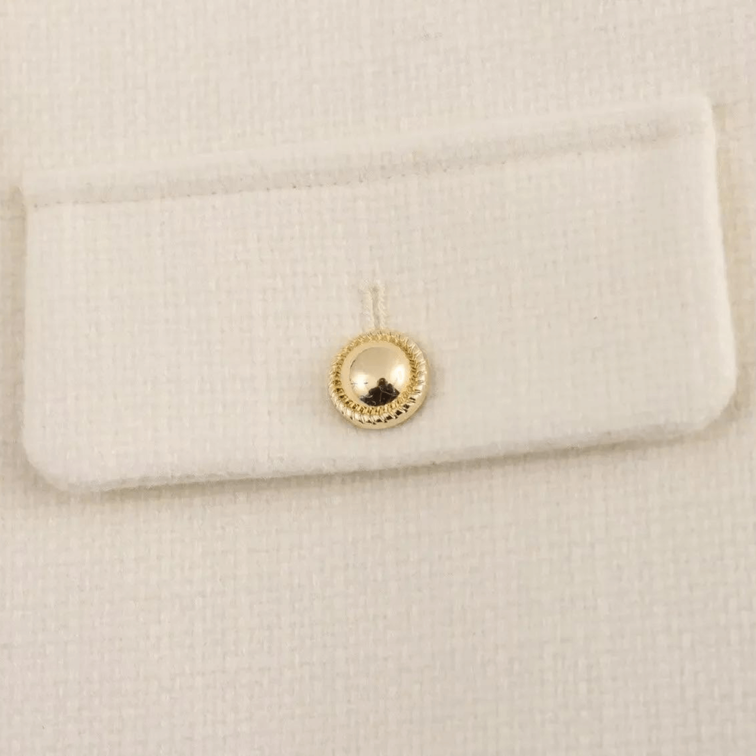 Cropped jacket with a round neckline and front buttons. Features four flap pockets with button details. Structured fit and long sleeves.